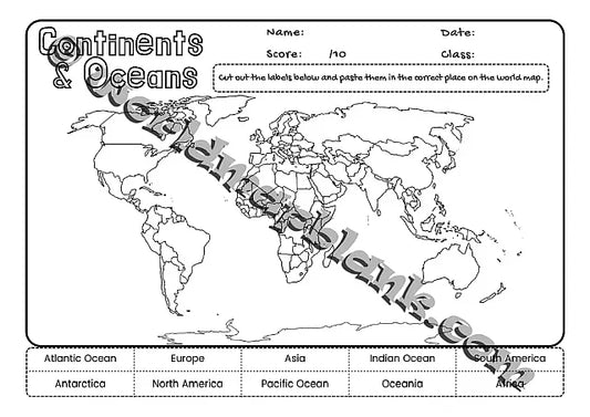 🗺 World Map Worksheets: Continents & Oceans