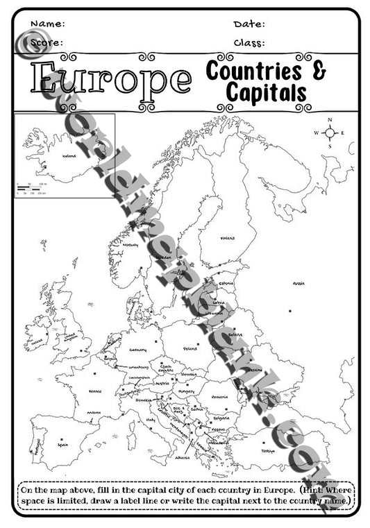 🇪🇺 Europe Map Worksheets: Countries & Capitals