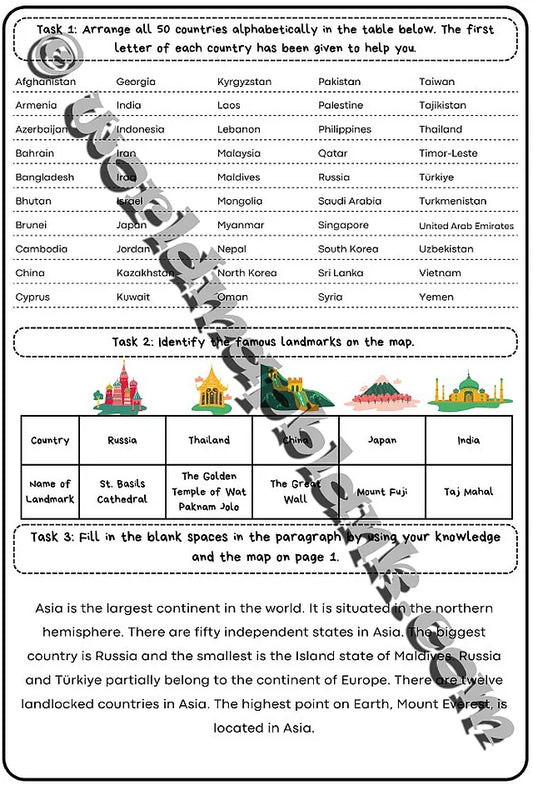🌏 Asia Map Worksheets: Countries & Capitals
