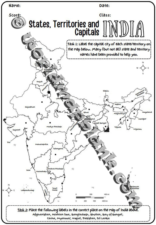🇮🇳 India Map Worksheets: States, Union Territories & Capitals