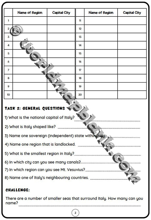 🇮🇹 Italy Map Worksheets: Regions & Capitals