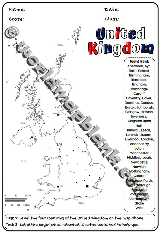 🇬🇧 UK Map Worksheets: Countries, Capitals & Cities